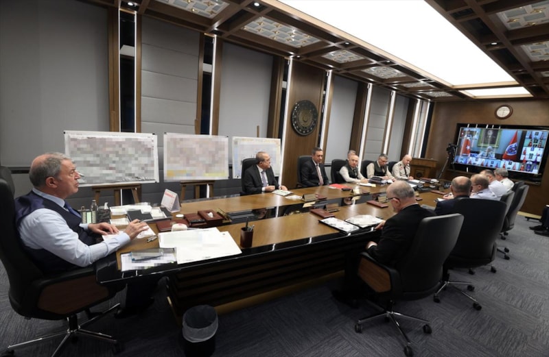 Hulusi Akar başkanlığında, Genelkurmay Başkanı Orgeneral Yaşar Güler, Kara Kuvvetleri Komutanı Orgeneral Musa Avsever, Deniz Kuvvetleri Komutanı Oramiral Ercüment Tatlıoğlu, Hava Kuvvetleri Komutanı Orgeneral Atilla Gülan ile Bakan Yardımcıları Yunus Emre Karaosmanoğlu, Şuay Alpay, Alpaslan Kavaklıoğlu ve Muhsin Dere ile ordu, birlik komutanlarının katılımıyla video konferans toplantısı düzenlendi.