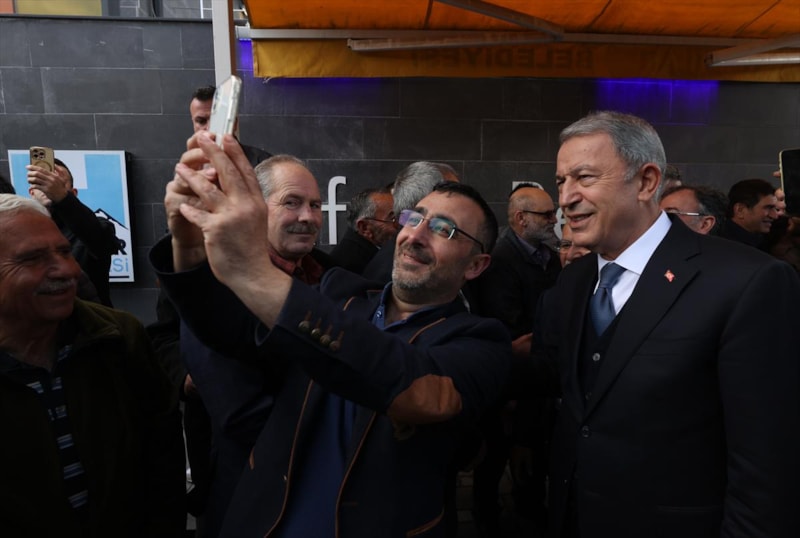 AK Parti’den Kayseri milletvekili adayı gösterilen Milli Savunma Bakanı Hulusi Akar, Hacılar ilçesinde vatandaşlarla bayramlaştı.