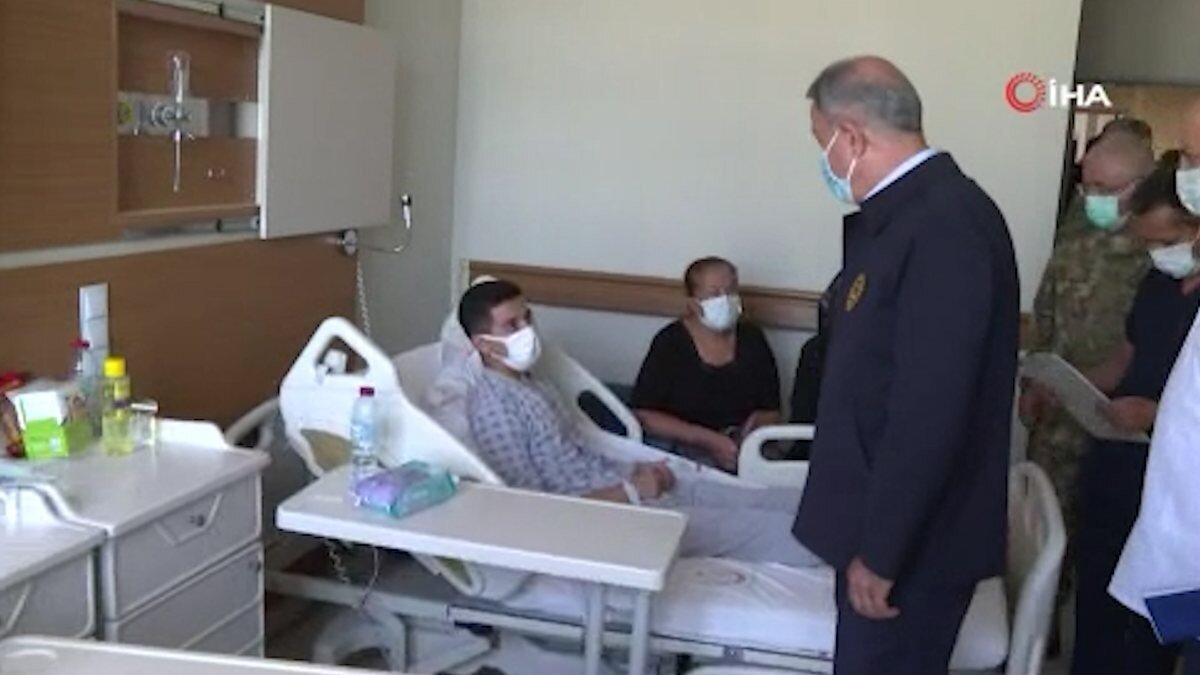 Sağlık durumlarına ilişkin yetkililerden bilgi alan Bakan Akar, askerlerle ve yakınlarıyla da görüştü.