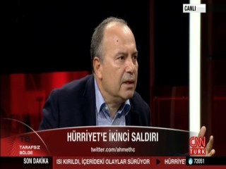 Haber, "Hürriyet'e ikinci saldırı" başlığıyla verildi. Gazete binasından kaçıp geldiğini söyleyen Hürriyet Gazetesi Genel Yayın Yönetmeni Sedat Ergin, CNN Türk'te Ahmet Hakan'ın Tarafsız Bölge programına katıldı.