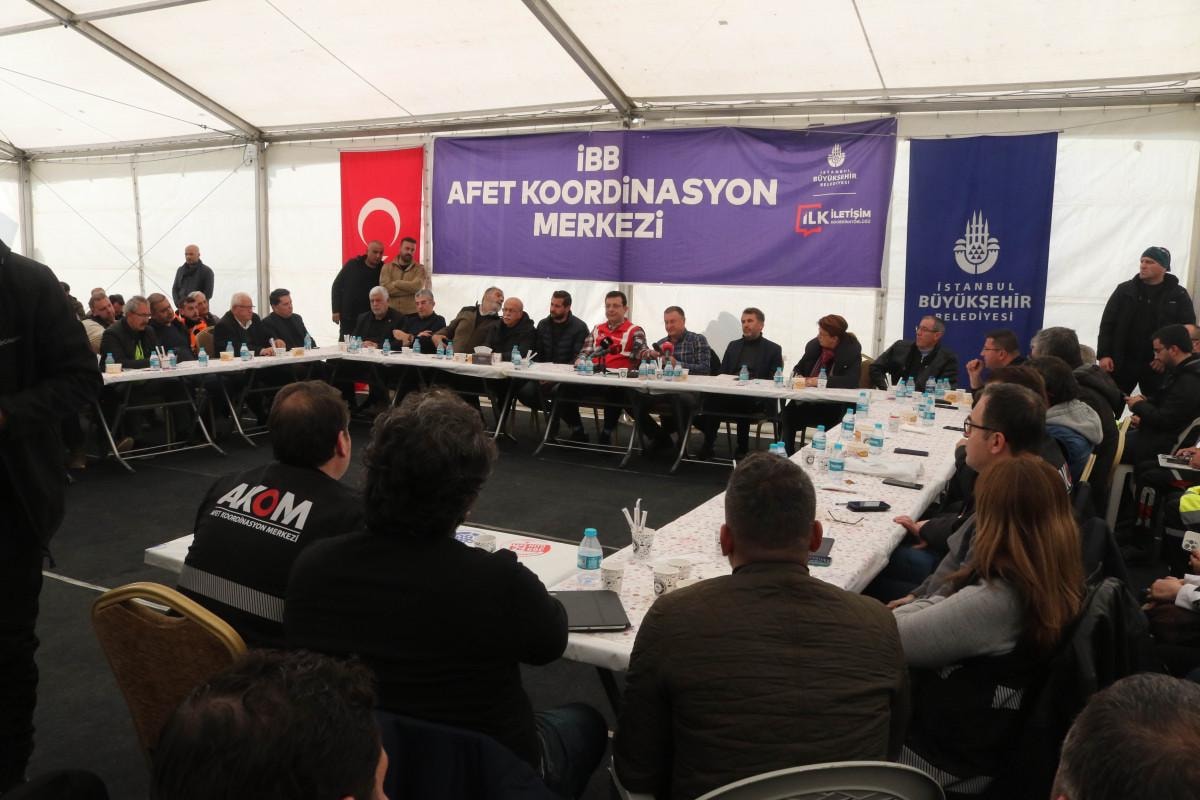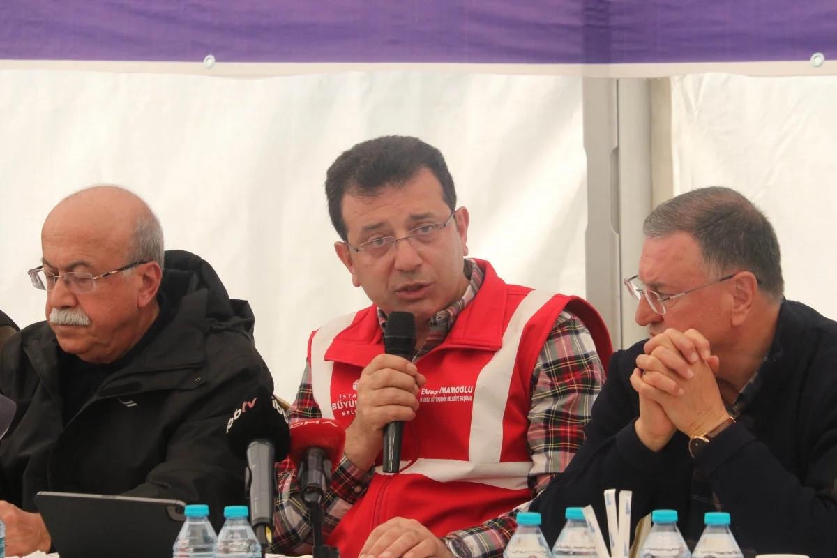 İstanbul Büyükşehir Belediye (İBB) Başkanı Ekrem İmamoğlu, Hatay'da kurdukları Deprem Koordinasyon Merkezi'nde basın mensuplarıyla bir araya geldi.