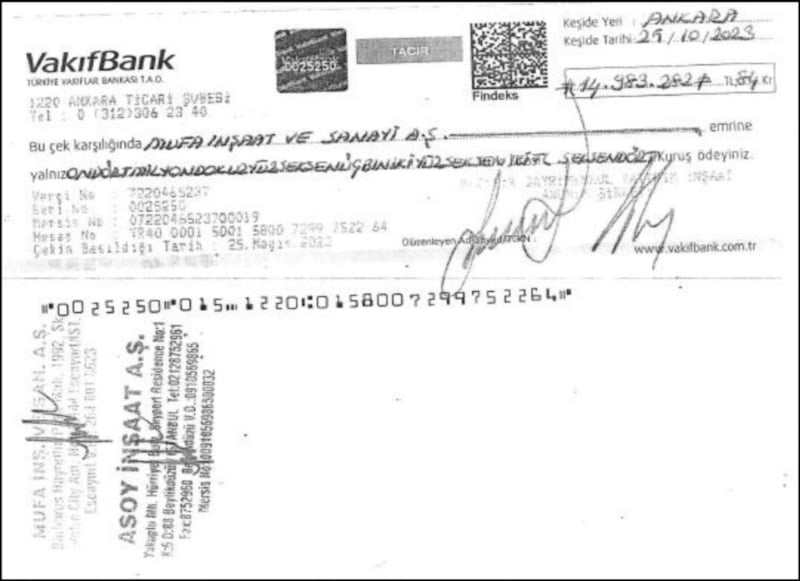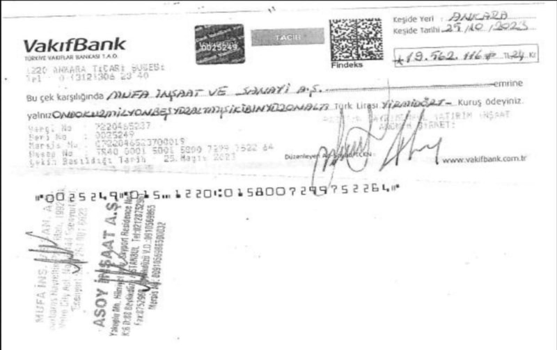 Soruşturma kapsamında etkin pişmanlıktan faydalanan Adem Soytekin, savcılığa sunduğu belgelerde Pasifik Gayrimenkul’den aldığı 14 milyon 983 bin TL ve 19 milyon 562 bin TL tutarındaki iki çek ile 17 milyon 177 bin TL’lik banka havalesini doğruladı.