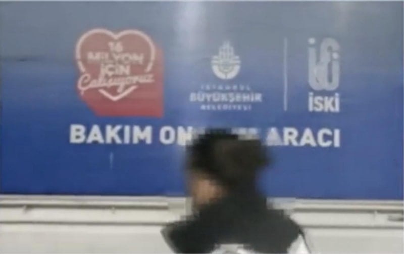 Üzerinde İSKİ ve İstanbul Büyükşehir Belediyesi (İBB) logosu bulunan kapalı kasa kamyonetin, Başakşehir ilçesindeki bir dükkanın önüne gelerek beklemeye başladığı görüldü.