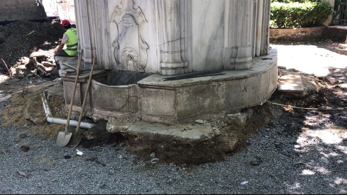 İstanbul Büyükşehir Belediyesi'nin yol yenileme çalışmaları sırasında tarihi çeşme hasar aldı.