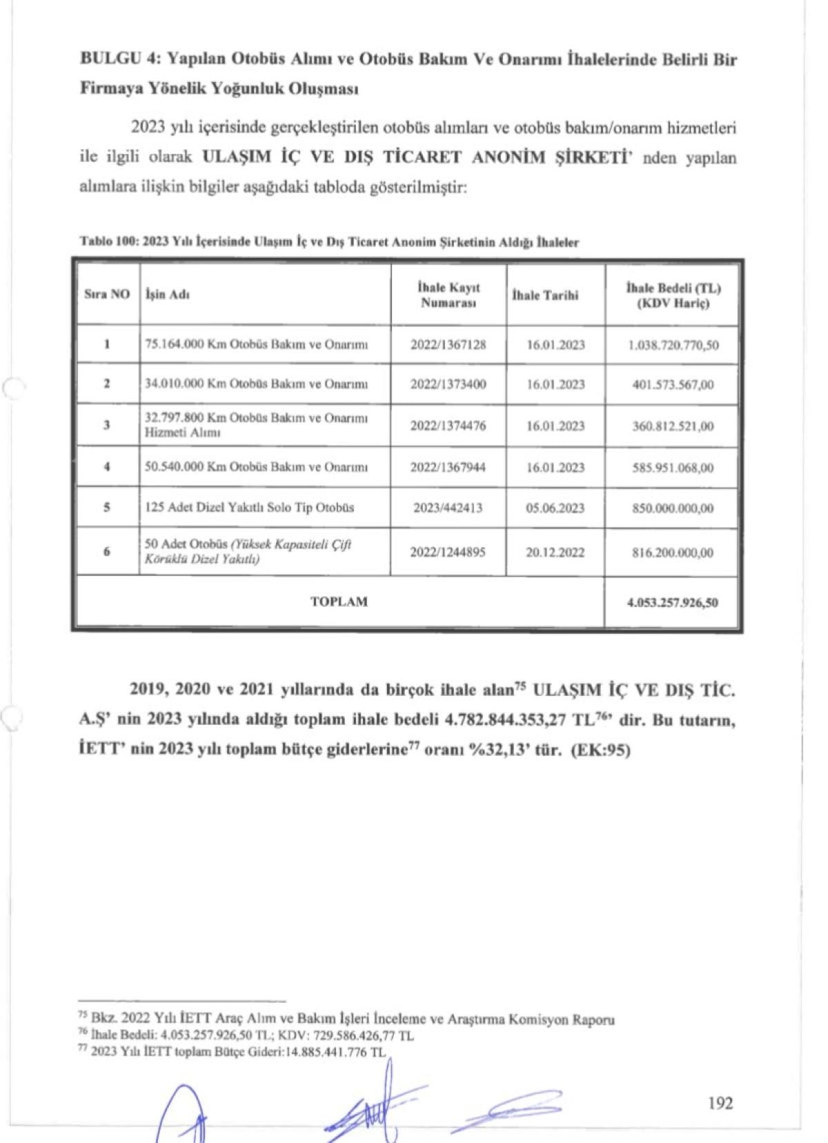 2023 yılında İETT’den 4 milyar 782 milyon liralık ihale verildiği tespit edildi.
