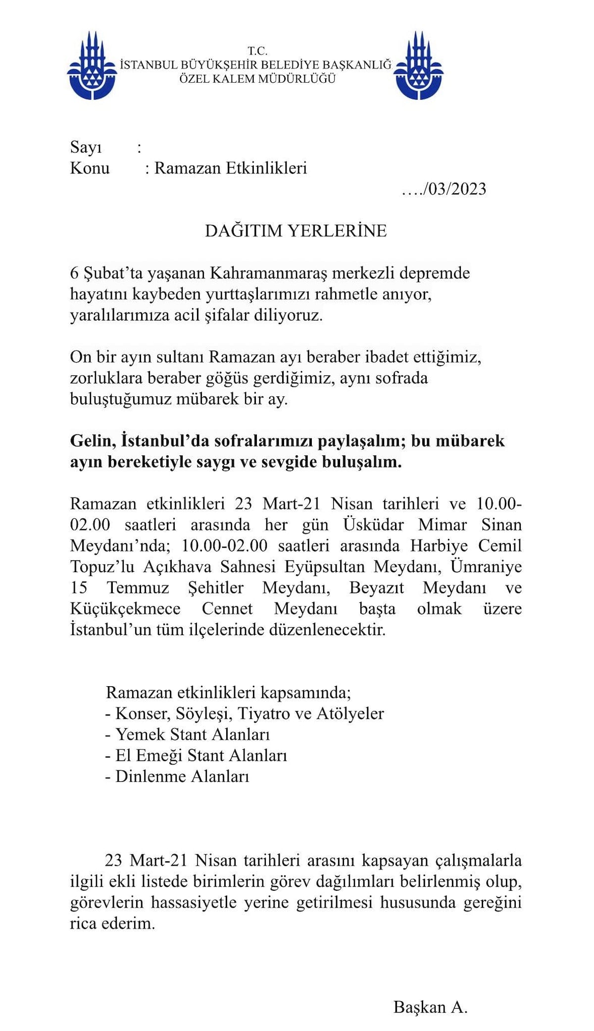 Öte yandan İstanbul Büyükşehir Belediyesi (İBB) tarafından etkinlik alanları belirlendi.