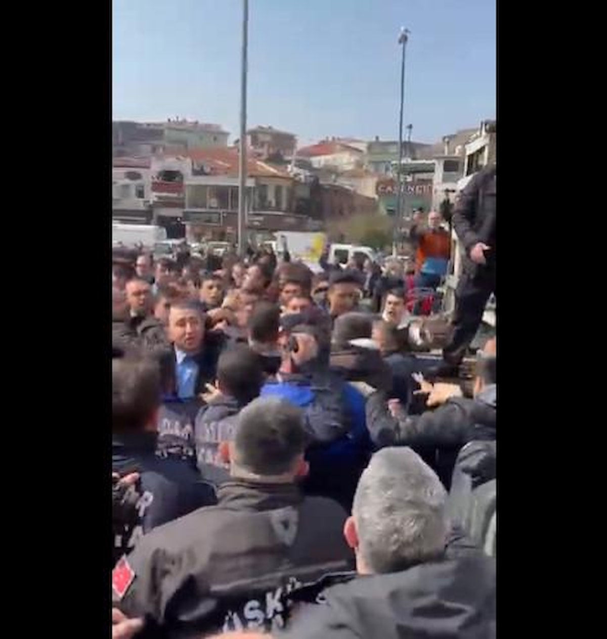 Karara karşı çıkan İBB ekipleri de tartışma çıkararak zabıtalara saldırdı.