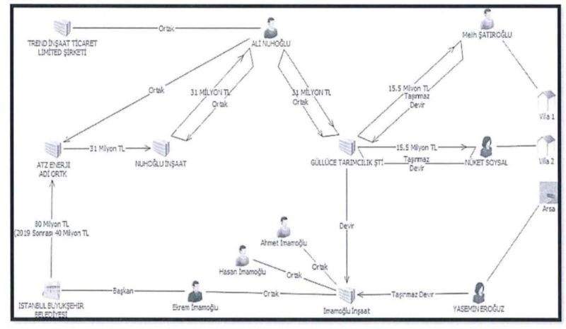 Öte yandan soruşturma kapsamında, İmamoğlu ile birlikte tutuklanan Furkan Remzi Ceylan'ın şirketi İSCON İnşaat ile Ali Nuhoğlu'na ait olduğu belirlenen Nuhoğlu İnşaat ve Trend İnşaat'a el konuldu.