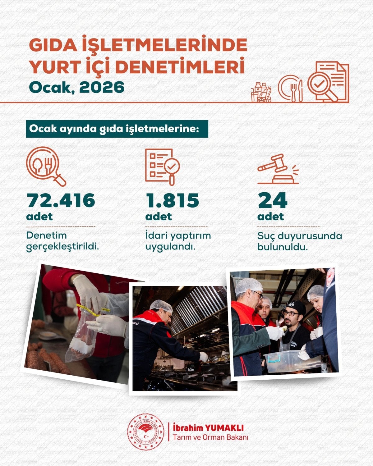 - Tarım ve Orman Bakanı İbrahim Yumaklı, Ocak ayında 72 bin 416 gıda denetimi yapıldığını açıkladı.