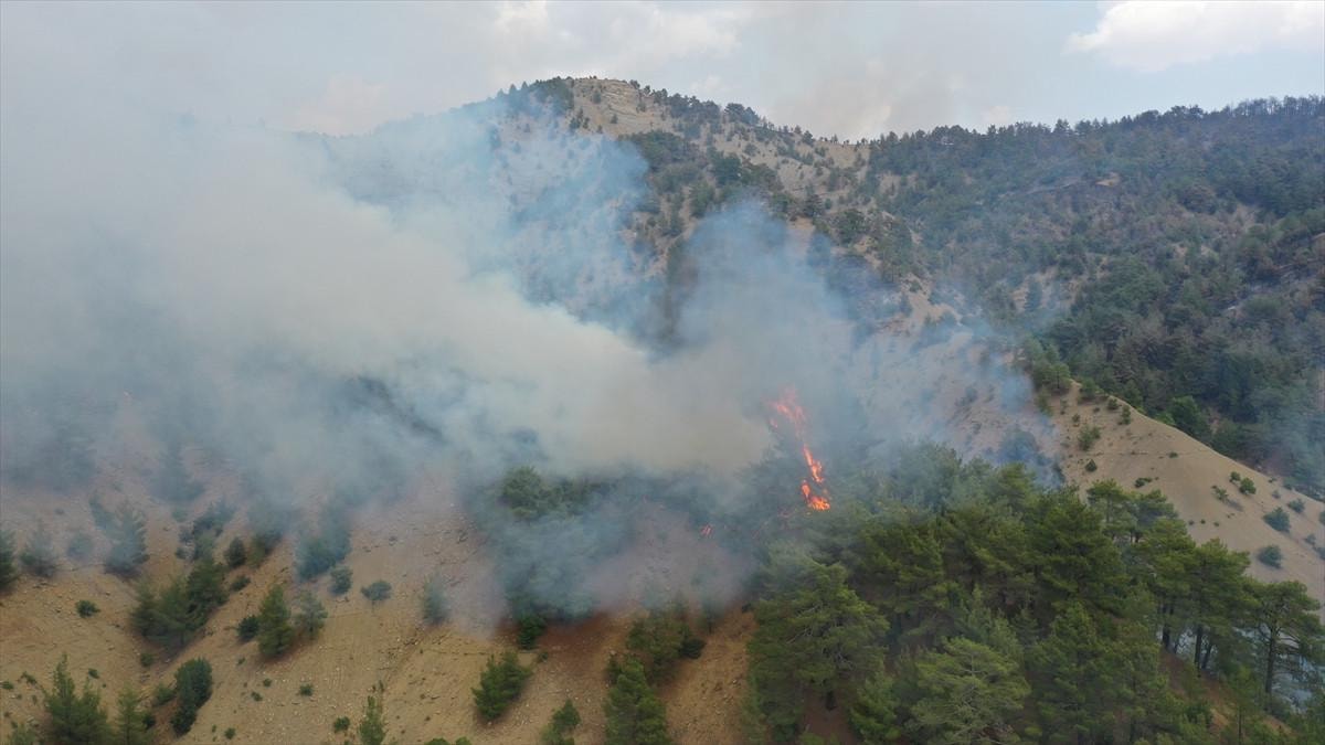 Kahramanmaraş'ın Onikişubat ilçesi Çamlıbel Mahallesi kırsalında ormanlık alanda önceki gün henüz belirlenemeyen nedenle yangın çıktı.
