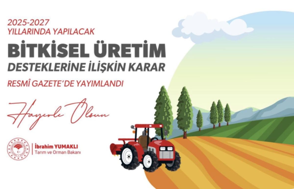 2025- 2027 yıllarında yapılacak bitkisel üretim desteklerine ilişkin karar, Resmi Gazete'de yayınlandı.