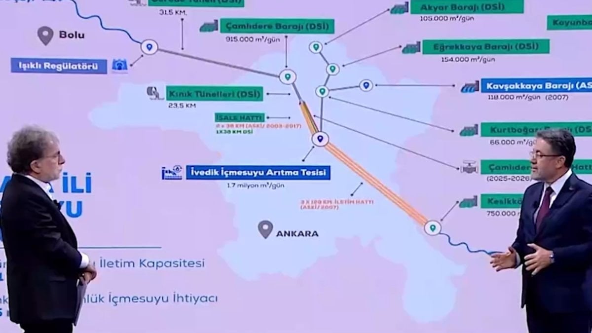 CNN Türk'te açıklamalarda bulunan Tarım ve Orman Bakanı İbrahim Yumaklı, Ahmet Hakan'ın "Yine Özgür Özel'in bir iddiası. Mansur Yavaş bir baraj yapmış, DSİ suyu getirmemiş. Hangi baraj bu?" sorusunu şu ifadelerle yanıtladı: