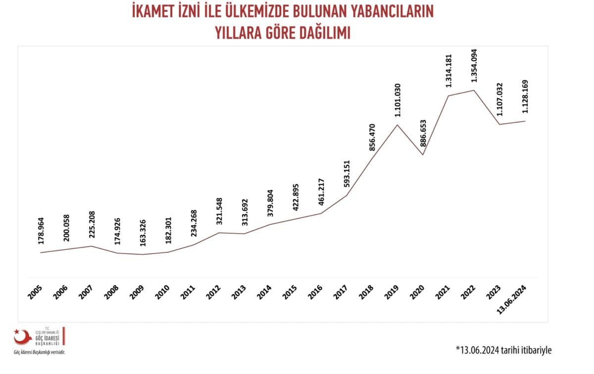 553 bin 153 (İkamet İzniyle Kalan Yabancılar:) olmak üzere;