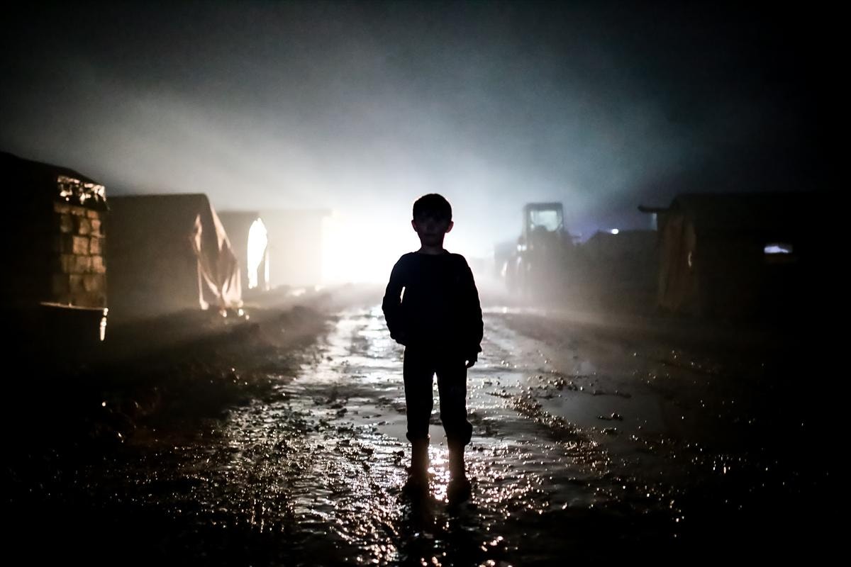 Kış aylarının sert geçmesiyle etkisini gösteren sağanak da İdlib'in Türkiye sınırına yakın bölgelerindeki çadır kamplarında yaşayan binlerce sivilinin hayatını daha da zorlaştırıyor.