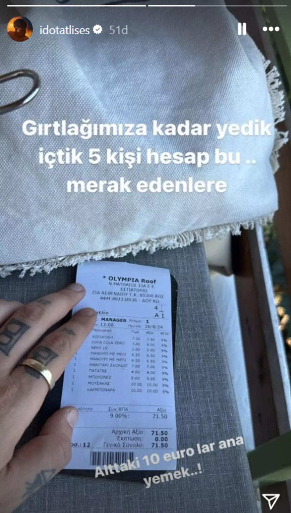 İbrahim Tatlıses'in oğlunun paylaşımında ödenen hesabın 71.50 Euro (2647,50) olduğu görüldü.