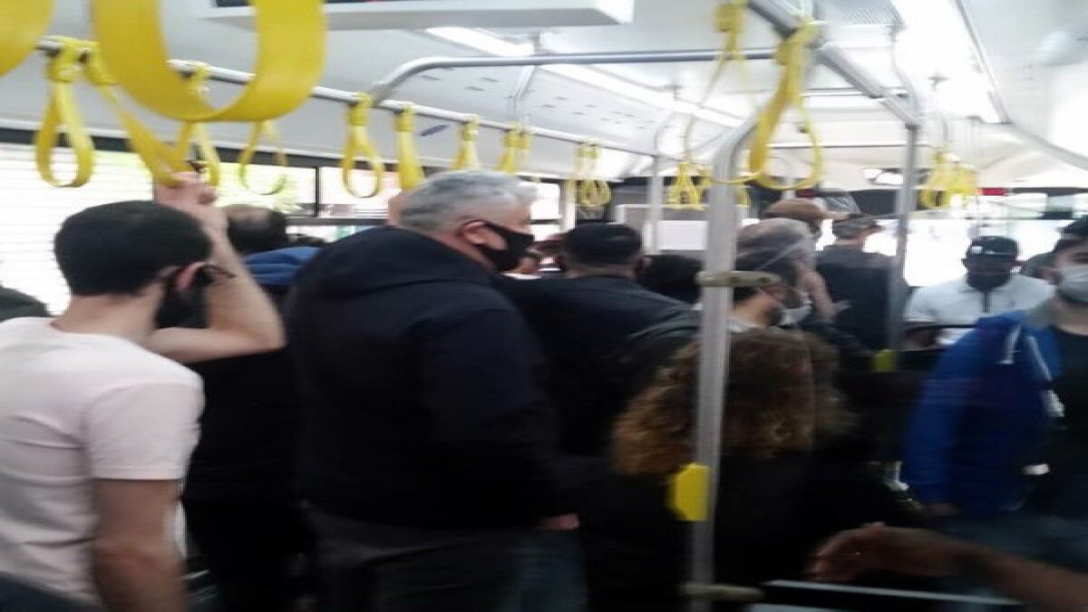 Yolculuk sırasında otobüste sosyal mesafenin hiçe sayıldığı görüldü.