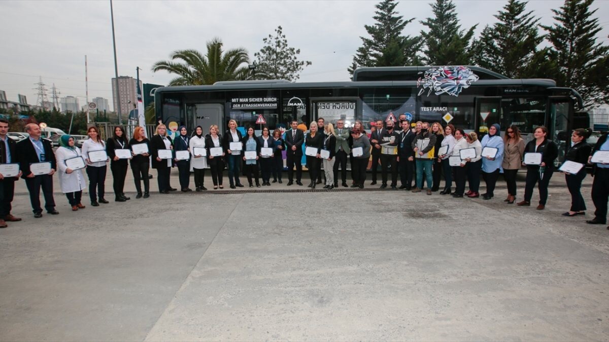 İstanbul Büyükşehir Belediyesi (İBB) ile MAN Kamyon ve Otobüs Ticaret A.Ş. iş birliği kapsamında şehir içi hatlarda aktif çalışan 24 kadın şoföre güvenli sürüş eğitimi verildi.