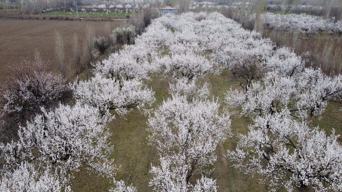Yılda ortalama 40 ile 45 ton kayısı veren ağaçlar ekonomiye verdiği destek kadar ilkbahar ayında da görsel şöleni ile görenleri büyülüyor.