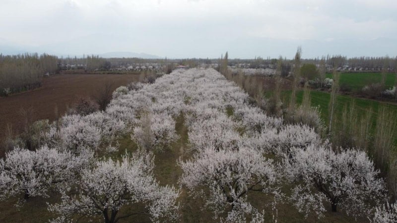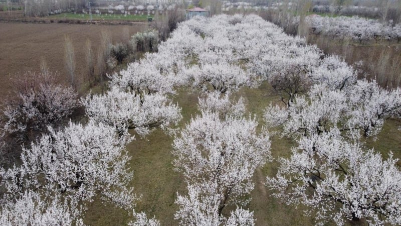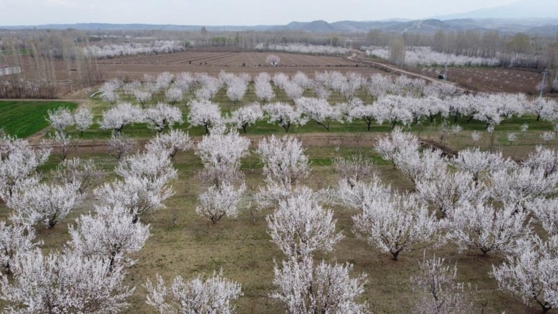 Iğdır Ovası'nda çiçek açan kayısı ağaçlarının oluşturduğu görüntü doğaseverleri büyülerden kayısı ağaçlarının yıllık 45 tona kadar kayısı verdiği kaydedildi.