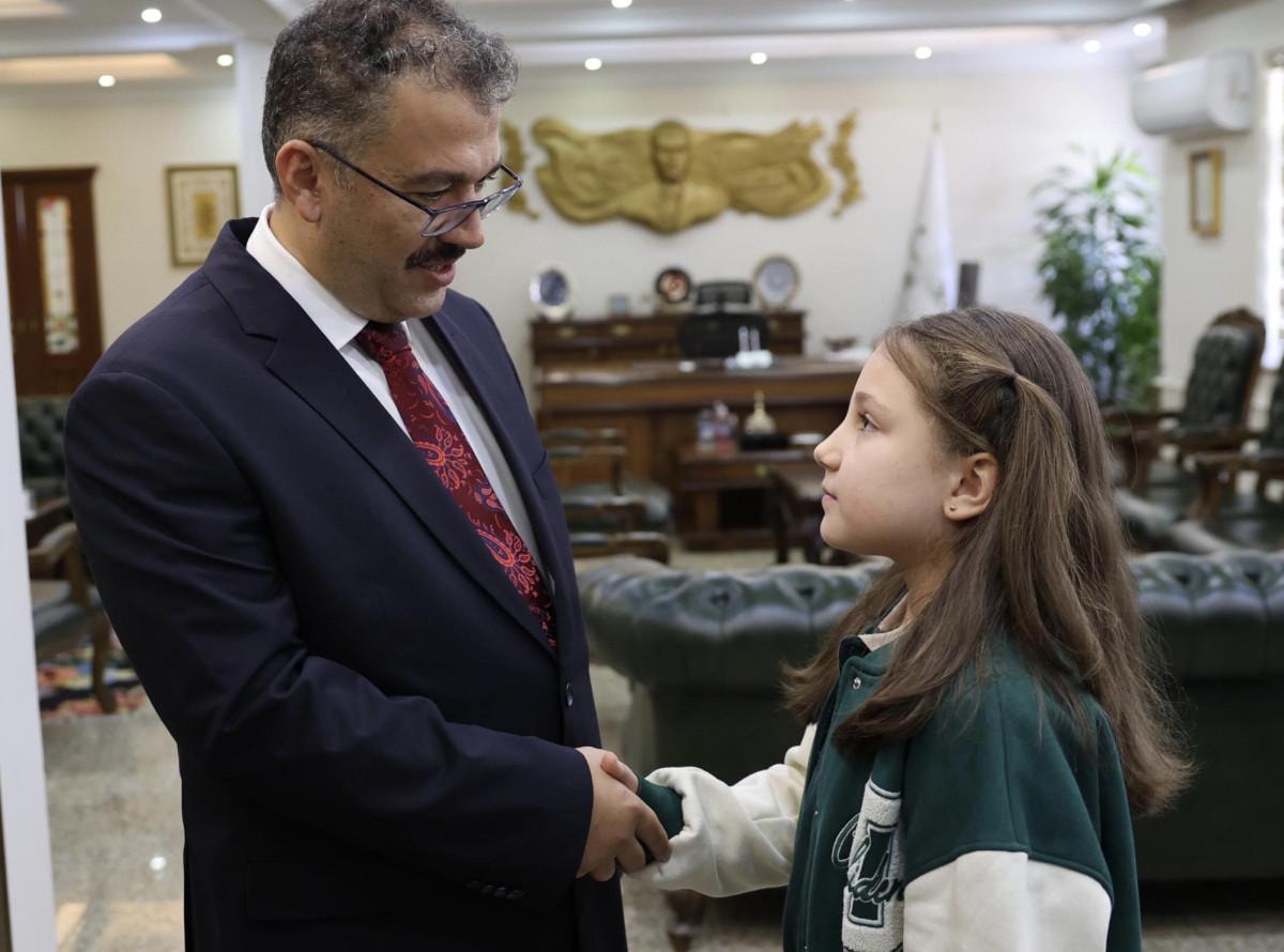 Iğdır Valisi Ercan Turan, Zeynep Ece Doğan ve ailesini makamında misafir etti.