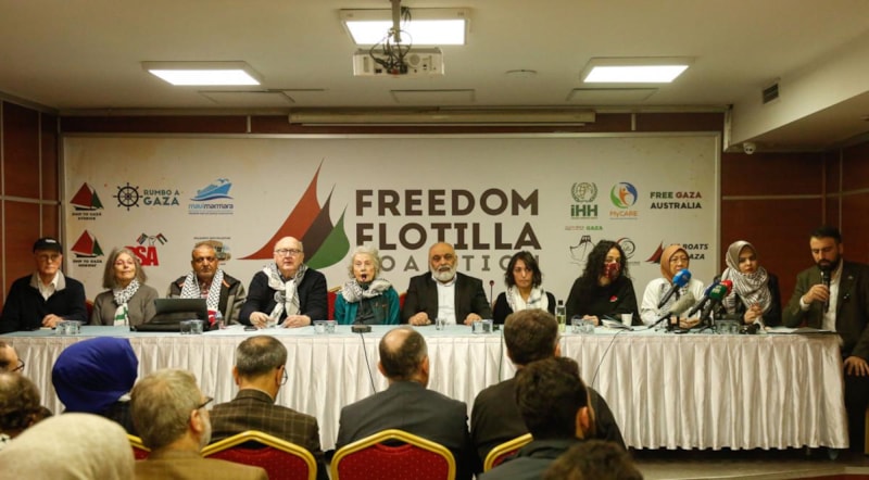 İHH Genel Merkezi’nde düzenlenen basın açıklamasına, İHH Genel Başkanı Bülent Yıldırım’ın yanı sıra; 10 ülkeden Uluslararası Özgürlük Filosu Koalisyonu üyesi akvistler katıldı. Koalisyonun katılımcı kuruluşları arasında; Türkiye’den İHH İnsani Yardım Vakfı ve Mavi Marmara Derneği, Kanada’dan Canadian Boat To Gaza, Malezya’dan My Care Malaysia, Norveç’ten Ship To Gaza Norway, Güney Afrika’dan Palestine Solidarity Alliance, İsveç’ten Ship to Gaza Norway, ABD’den US Boat to Gaza, Avustralya’dan Free Gaza Australia, Yeni Zelenda’dan Kia Ora Gaza, İngiltere’den Palestine Solidarity Campaing ve Breaking the Siege of Gaza yer alıyor.