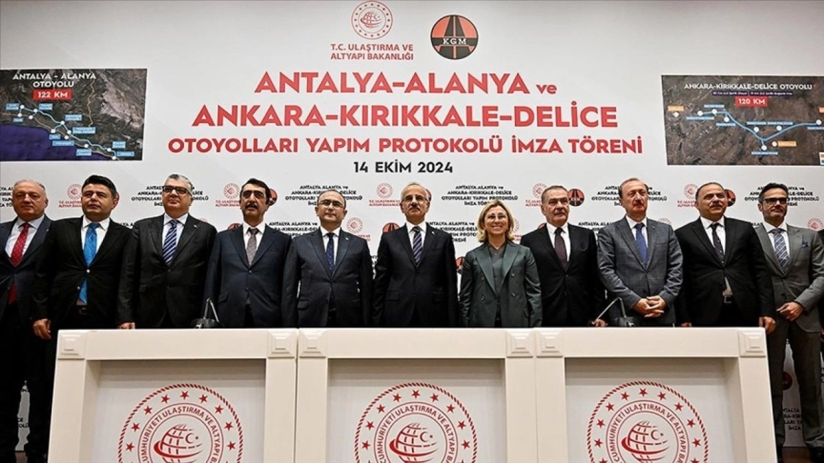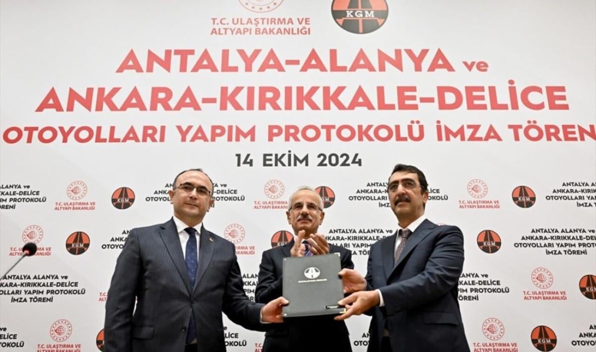 Ulaştırma ve Altyapı Bakanlığı binasında gerçekleştirilen Antalya-Alanya ve Ankara-Kırıkkale-Delice Otoyolu Projeleri Yapım Protokolü İmza Töreni'nde, Ankara-Kırıkkale-Delice ve Antalya-Alanya otoyol projelerinin yapımı için taraflar adına imzalar atıldı.