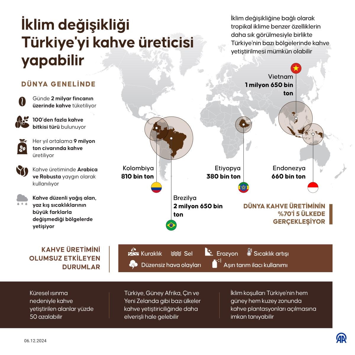 Gökmen, küresel ısınmanın bir başka sonucu olarak kara buzullarının erimesi ve su seviyelerinin artmasıyla tarım yapılan belli bölgelerin su altında kalabileceğini, bu durumun kahve yetiştirmeye elverişli tarım arazilerinin daralması riskini beraberinde getireceğini kaydetti.