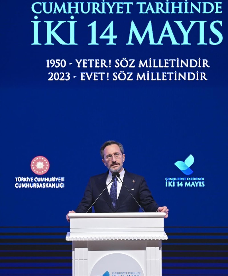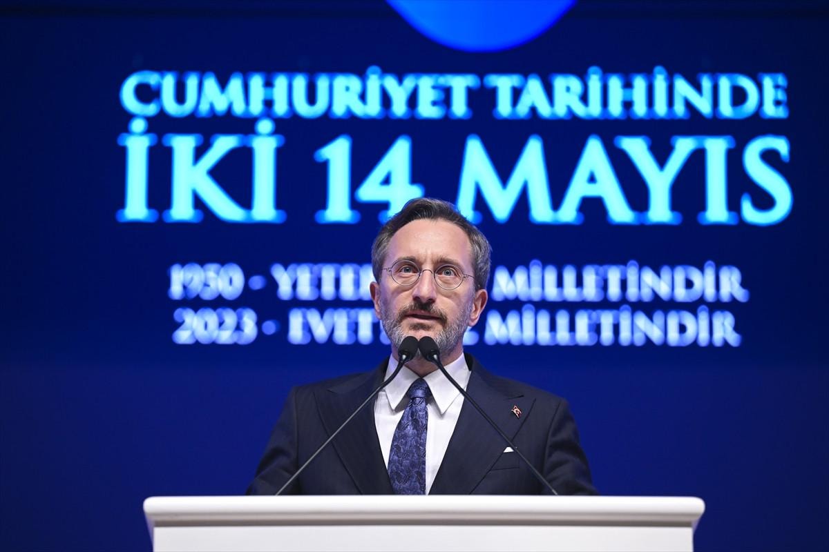 İletişim Başkanı Fahrettin Altun, Cumhurbaşkanlığı İletişim Başkanlığı ile Cumhurbaşkanlığı Hukuk Politikaları Kurulu işbirliğinde Demokrasi ve Özgürlükler Adası'ndaki Adnan Menderes Kongre Merkezi'nde düzenlenen "Cumhuriyet Tarihinde İki 14 Mayıs" başlıklı panelde yaptığı konuşmada, panelin, millet iradesine kastedilen 27 Nisan bildirgesinin yıl dönümünde, Demokrasi ve Özgürlükler Adası'nda gerçekleştirilmesinin, ayrı bir öneme sahip olduğunun altını çizdi.