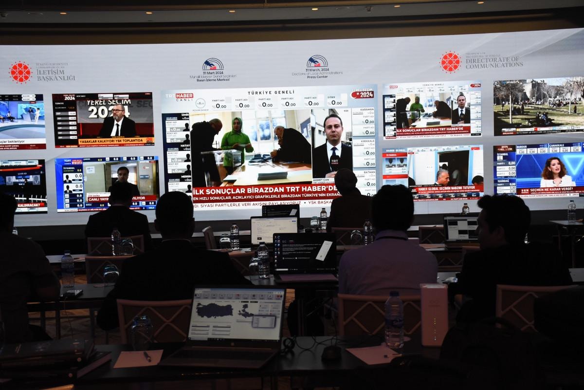 Sonuçları takip etmek isteyen basın mensupları, Taksim’de kurulan basın merkezinde hızlı ve sağlıklı bir veri akışı alıyor.