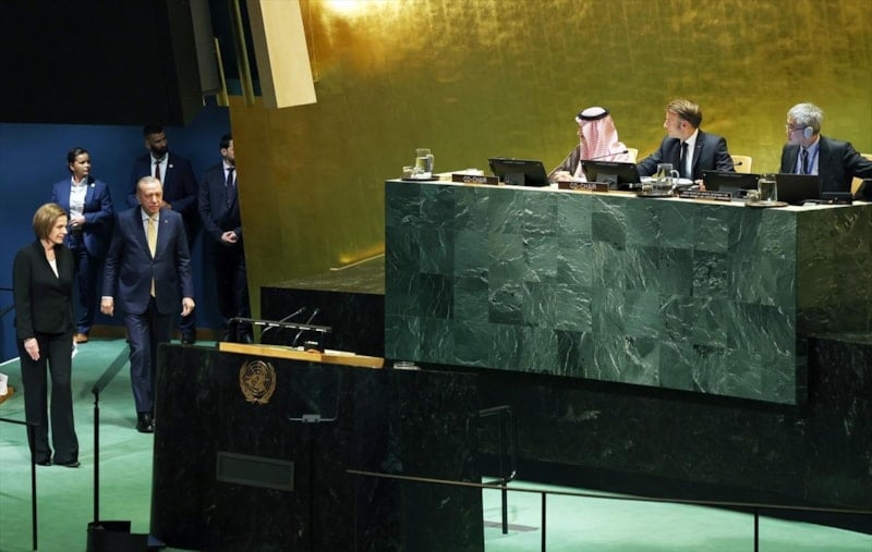 Cumhurbaşkanı Recep Tayyip Erdoğan, BM Genel Kurul Salonu'nda düzenlenen Filistin Meselesine Çözüm Bulunması ve İki Devletli Çözümün Hayata Geçirilmesi Konulu Yüksek Düzeyli Uluslararası Konferansı'na katıldı.