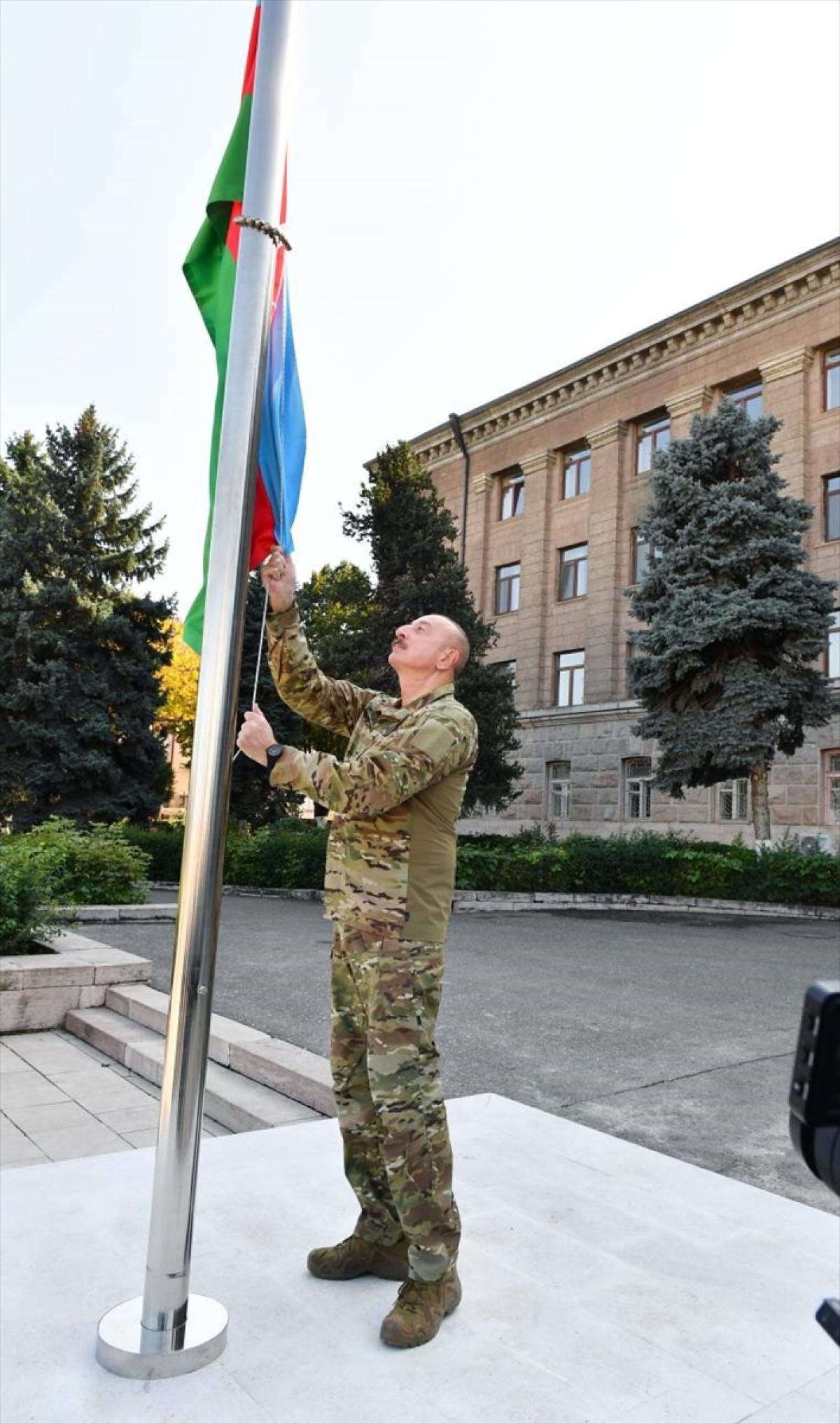 Aliyev, bayrağı göndere çekti