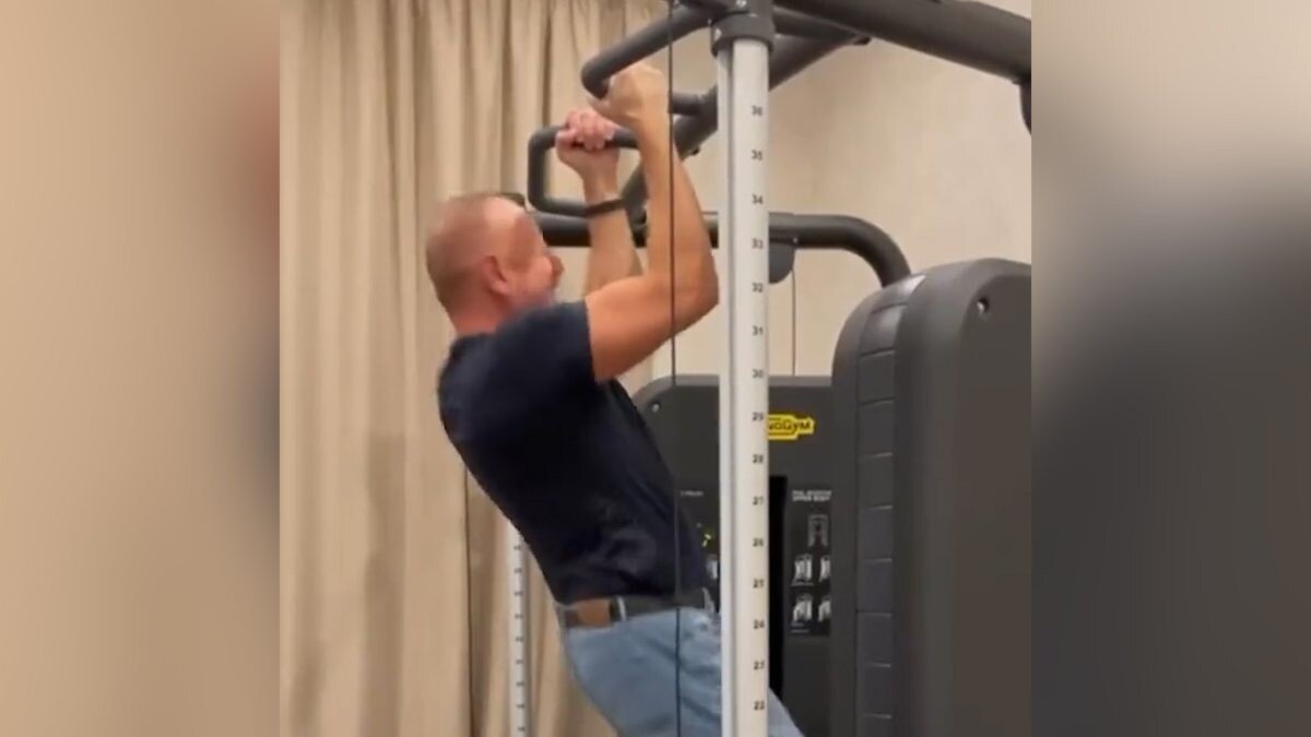 Görüntülerde barfiks çekerken görülen Aliyev, "15 kez, 60 yaşında" diyerek gülümsedi.