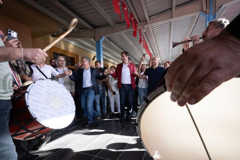 Yolcular ve protokol üyeleri, davul zurna eşliğinde halay çekti.