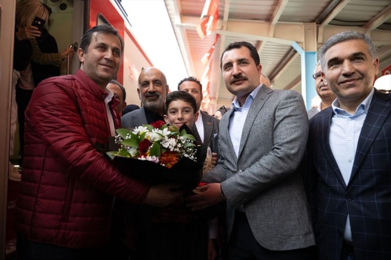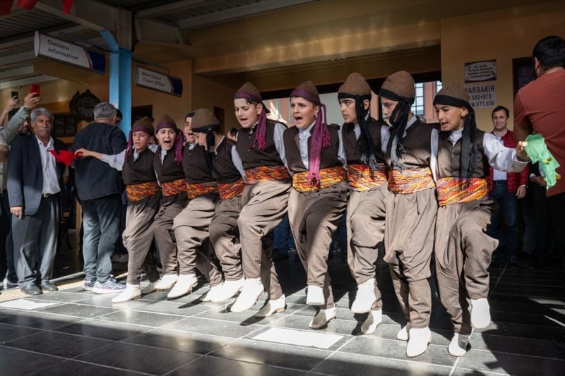 Vali Yardımcısı İlyas Öztürk, İl Kültür ve Turizm Müdürü Sebahattin Genç, Diyarbakır Ticaret ve Sanayi Odası (DTSO) Başkanı Mehmet Kaya ile sivil toplum kuruluşlarının temsilcileri, Diyarbakır Gar'ında "Turistik Diyarbakır Ekspresi" ile kente gelenleri çiçeklerle karşıladı.