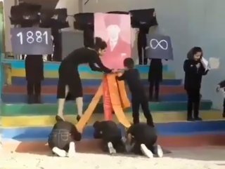10 Kasım'da düzenlenen törende küçük çocukların, Atatürk fotoğrafının önünde secde ettiği görülüyor.