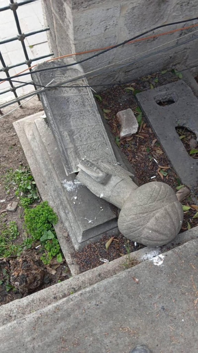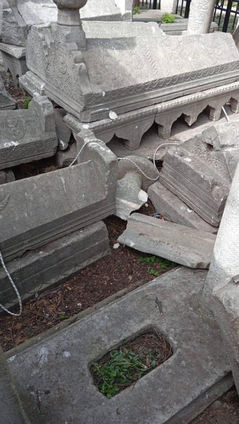 Parçalanan mezar taşlarının son hali sosyal medyaya yansıdı.