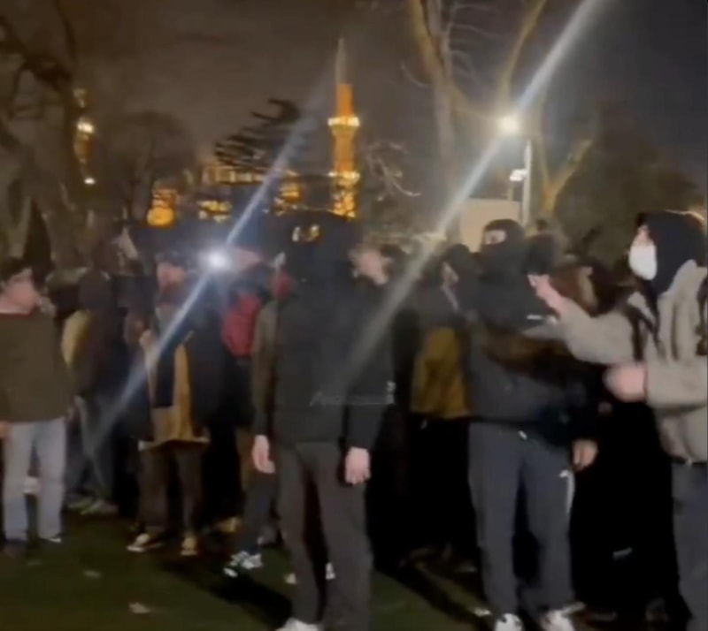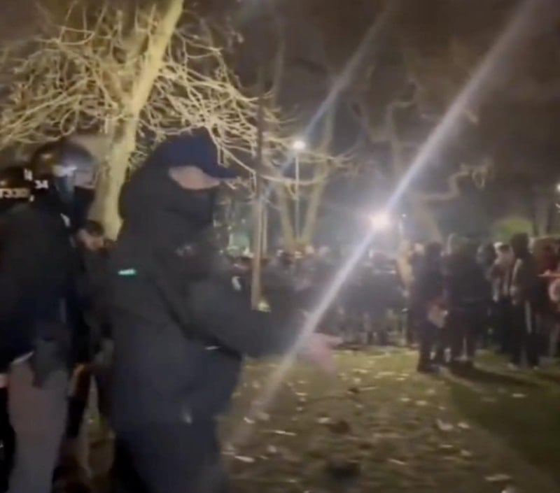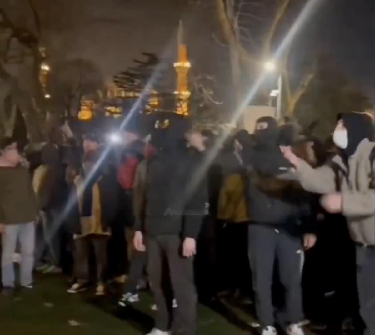 Polise taşlarla saldıran grup, bir ara çevik kuvvet timinin başındaki komisere 'teke tek' dövüş teklifi yaptı.