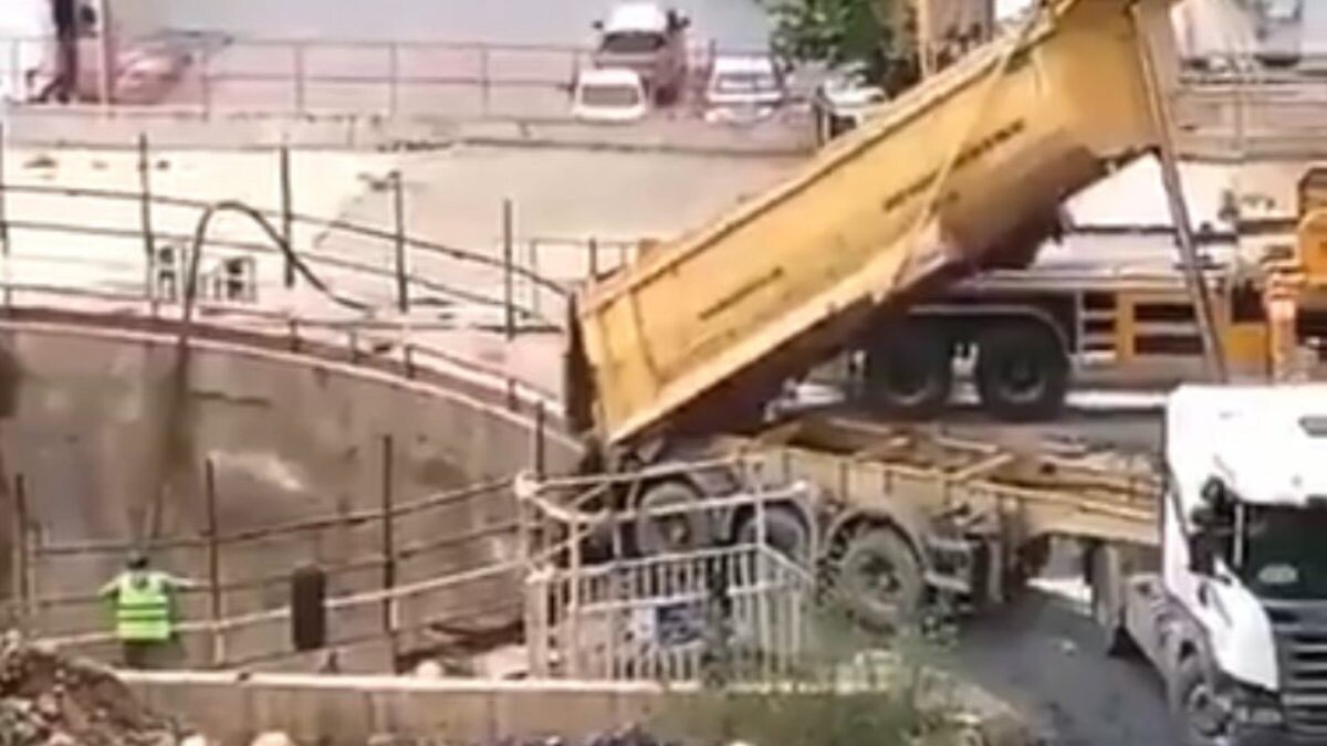 Metro inşaatına hafriyat döküldüğü anlarda çekilen görüntüler sosyal medyada büyük yankı uyandırdı.