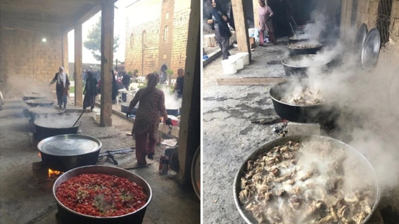 Kesilen oğlaklarla tam 600 kişilik ziyafet hazırlandı. 600 kişiye yemek hazırlanan konakta, etler 5 kazanda pişirildi. Yemek için yüzlerce kilo pirinç kullanıldı.