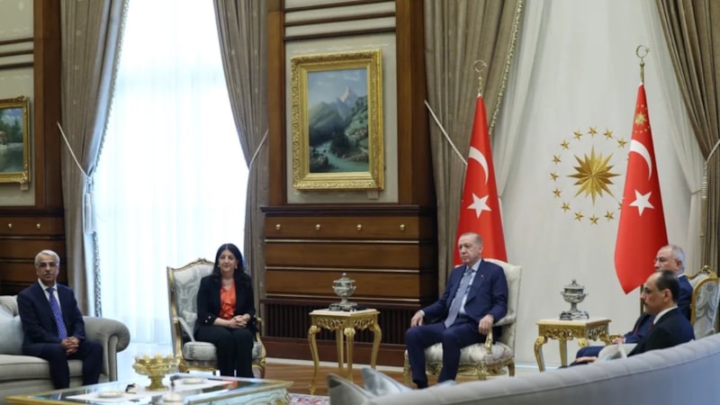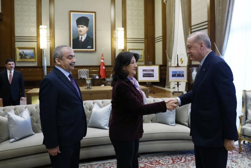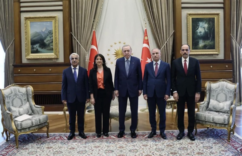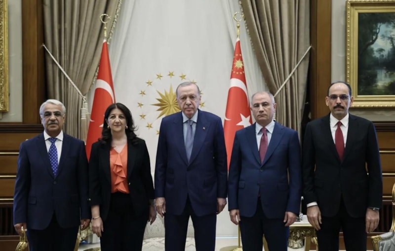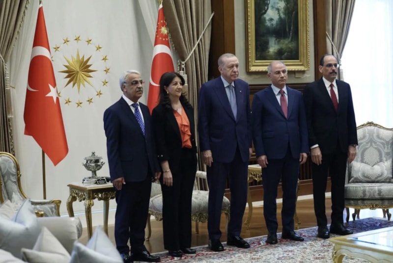 10 Nisan'da Van Milletvekili Pervin Buldan ve yaşamını yitiren TBMM Başkanvekili ve İstanbul Milletvekili Sırrı Süreyya Önder’den oluşan DEM Parti İmralı Heyeti, Cumhurbaşkanı Erdoğan ile Beştepe’de bir araya geldi.