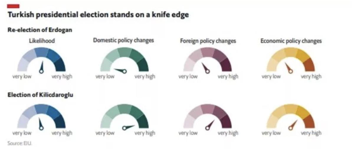 Son olarak İngiliz Economist dergisinin araştırma ve analiz bölümü Economist Intelligence Unit (EIU), Türkiye'de 14 Mayıs'ta yapılacak seçimlere yönelik bir analiz yayınladı.