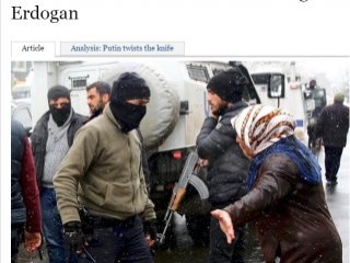 "PKK'nın ölü bedenlerinin olması Erdoğan'ın yüzünden" manşetiyle okuyuculara duyurulan haberde, sivillerin çapraz ateşte olduğu iddia edilerek Türkiye açıkca suçlandı.