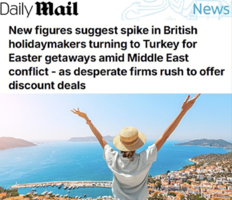 İngiliz gazetesi Daily Mail'e göre, İngiliz tatilciler sadece 15 pounda (884 lira) uçak bileti veya 200 pounda (11 bin 796 lira) paket olarak tatil satın alabiliyorlar.