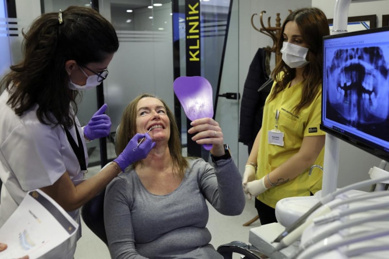 İngiltere'de diş hekimi yetersizliği ve yüksek fiyatlar nedeniyle Türkiye'ye diş tedavisine gelerek artan zamanda da İstanbul'u gezen 55 yaşındaki Marion Parks, ülkesinde 181 bin TL'ye yaptıracağı uygulamayı 33 bin TL'ye yaptırdığını söyledi.