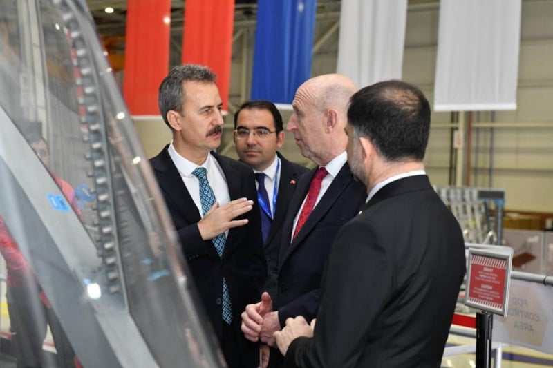 Milli Savunma Bakanı Yaşar Güler'in eşlik ettiği Bakan Healey, Türk Havacılık Uzay Sanayii A.Ş.'yi (TUSAŞ) ziyaret etti.