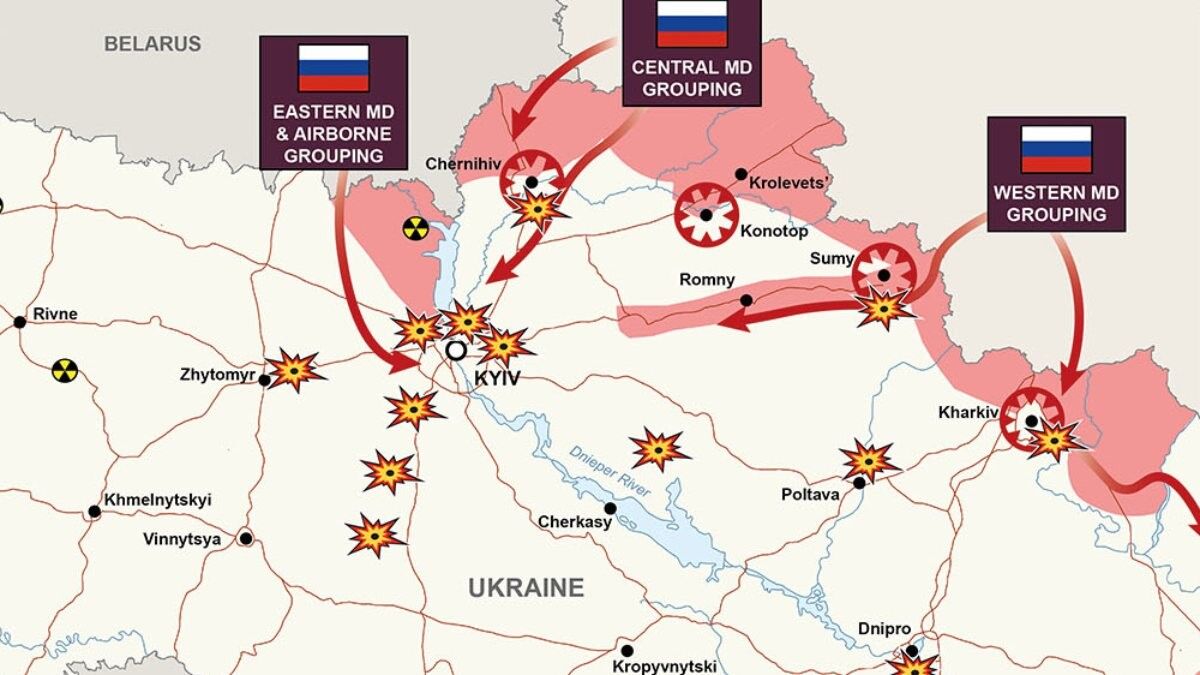 Haritada nükleer santraller işaretlenirken, Rusların hangi noktalardan hangi şehirleri vurduğu oklarla çizildi.