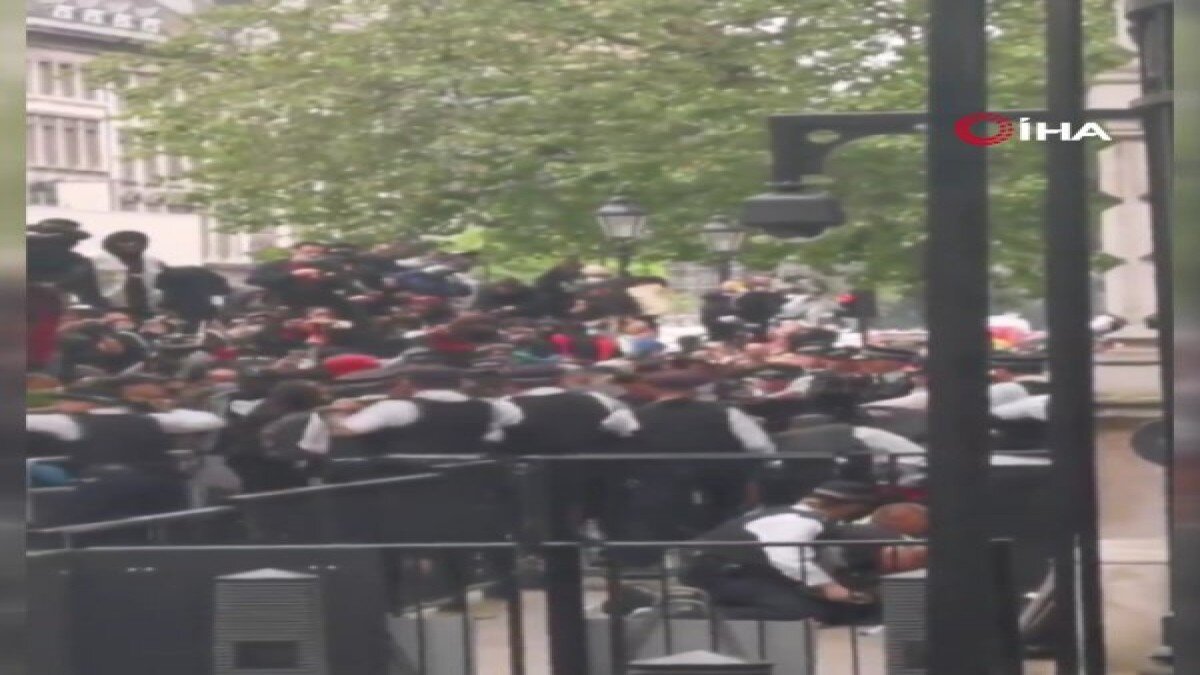 İngiliz polisi göstericiler arasından bir eylemciyi çekerek, yere yatırdı. Yere yatırılan göstericinin üzerine birden fazla polisin çıktığı görüldü.