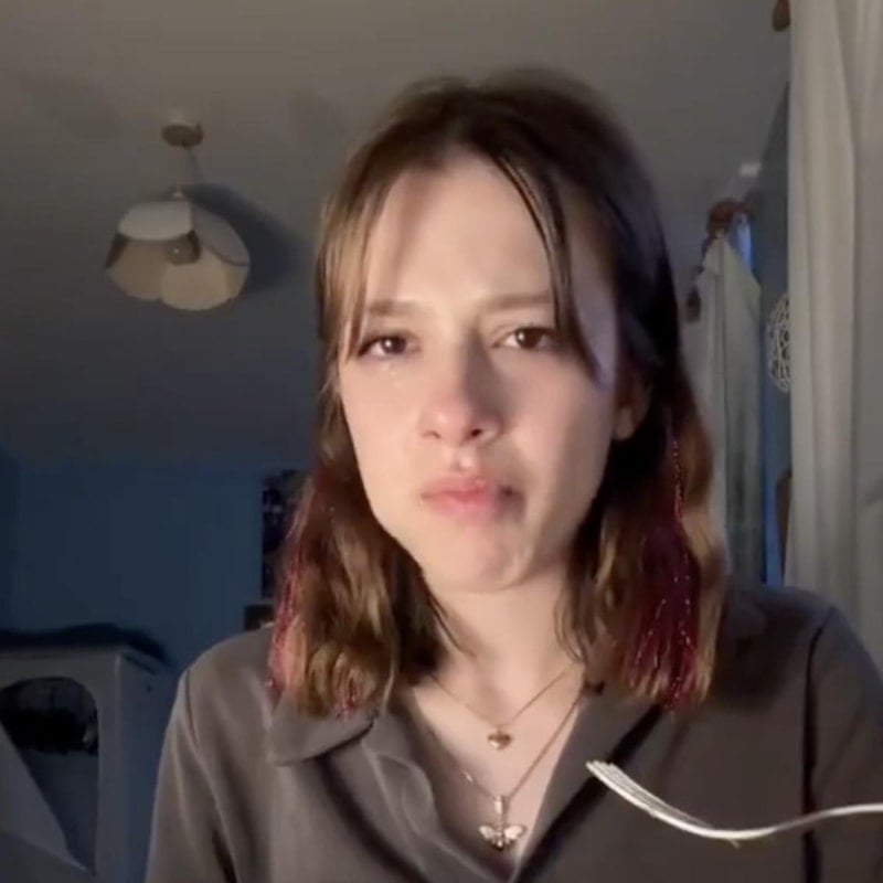 Genç kız, yemek yerken kaydettiği videoda helal yemek bulmakta ne denli zorlandığını anlattı.
