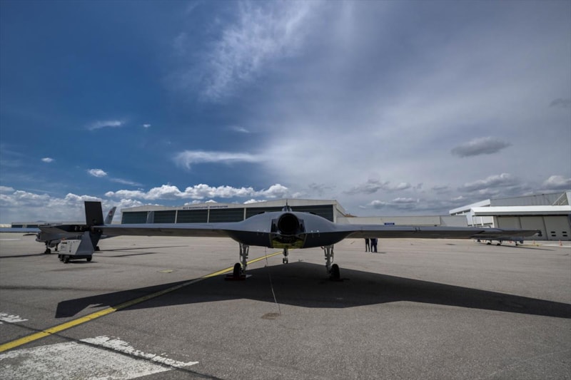 "Uçan kanat" yapısı sayesinde düşük radar görünürlüğü, yüksek hız, yüksek taşıma kapasitesi gibi birçok avantaja sahip ANKA-3'ü ilk kez görüntülendi.