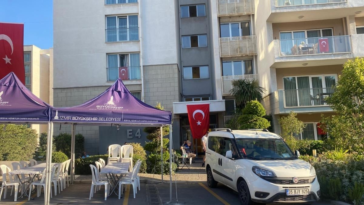 Astsubay emeklisi Özcan Akar ile askeriyeden emekli memur Jüliye Akar’ın iki çocuğundan büyüğü olduğu öğrenilen şehit ailesinin oturduğu siteye Türk bayrakları asılırken, evin önüne taziye çadırı kuruldu.